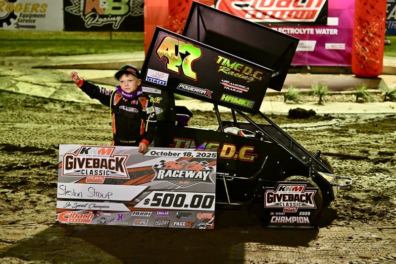 Competing in semi-feature racing action in Tulsa for the Non-Wing Restrictor would find Braxton Flatt, Collin Pruitt, Marek Pipe, and Ryker Jones each earning the qualifier victories, with Braxton Stewart, Brooks Buoy, and Nicholas Harris earning semi-feature wins. Willard Ballard and Maggie Stroup would gain early on-track wins in the Jr Sprint division by taking B-Feature wins. KKM Giveback Classic Championship Night High Event Qualifiers earning the feature pole starting positions would be Deekan McRoberts in the Non-Wing Restrictor and Stetson Stroup in Jr Sprints.