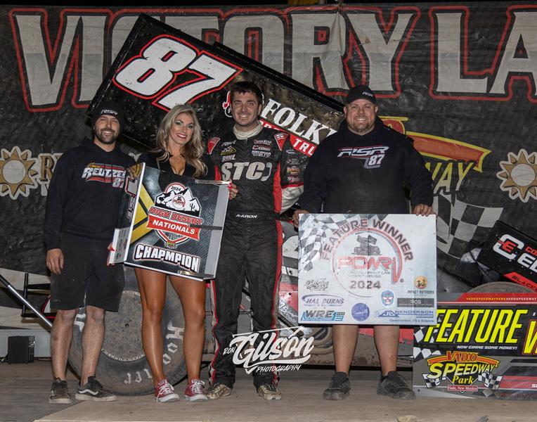 Belleville, IL. (11/16/24) Returning for the final weekend of 2024 racing action with a double-dose of on-track excitement as Vado Speedway Park would welcome the POWRi Desert Wing Sprint Series for the lucrative POWRi High Desert Nationals presented by Harris Kendrick Motorsports with Aaron Reutzel claiming the victory on night one of the adrenaline-fueled 360 Wing-Sprint competitions.