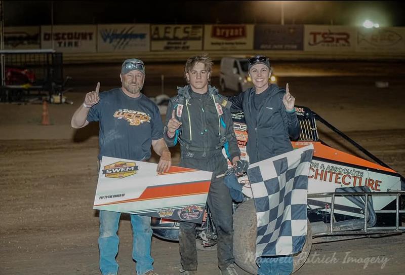 Restarting on the second weekend night of series excitement with twenty-one entries at Adobe Mountain Speedway with the POWRi SWEM Series would witness Shon Deskins set the quick time during hot laps with a time of 12.101 as Gant Schaadt, JR Wood, and Nathan High each notched the heat racing wins with Tyler Merrill emerging victorious in the semi-feature. At the same time, Gant Schaadt would earn the high point qualifier award for the event.
