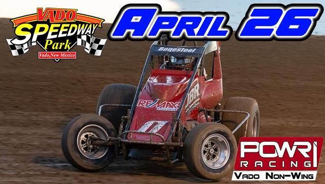 Classes scheduled for competition at Vado Speedway Park on Saturday, April 26th is set to include the Sunset Grill POWRi Vado Non-Wing Sprints, Modifieds, Stock Cars, INEX Legends, and Pure Stocks. Pit gates open at 4:00 PM, General Admission opens at 5:00 PM, with racing beginning at 7:30 PM.