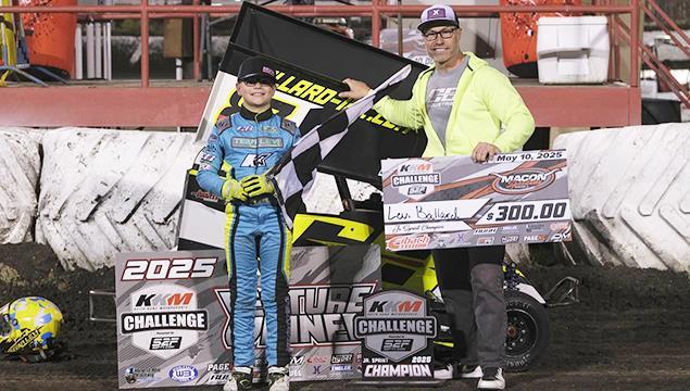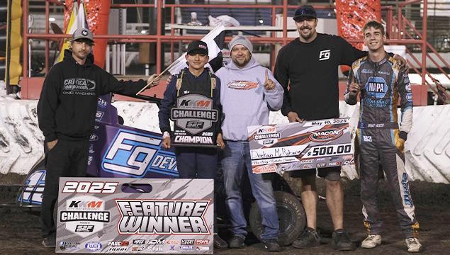Macon, IL. (5/10/25) Running in support division competitions of Championship Night in the first yearly Eibach Racing KKM Challenge presented by Start2Finish at Macon Speedway would find Deekan McRoberts earn the feature victory in the Non-Wing Restrictor division, as Levi Ballard would visit victory lane driving in the Jr Sprint division.