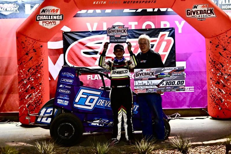 Tulsa, OK. (10/17/25) Running divisional competitions of Preliminary Night Two in the Eibach Racing KKM Giveback Challenge presented by Max Papis Innovations event at Port City Raceway would find Deekan McRoberts earn the feature victory in the NOW600 Non-Wing Restrictor division, as Liam Barton would visit victory lane driving in the Jr Sprint division.