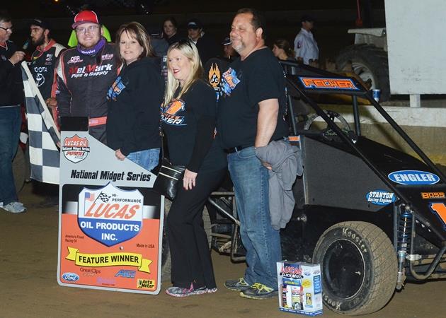 Belleville, IL – Andrew Felker of Carl Junction, Missouri overtook Zach Daum in the final laps of the Lucas Oil POWRi National Midget Series feature event to earn his sixth-career victory with the series, on a two-in-a-row victory streak after his win last week at Macon Speedway. Nathan Benson of Concordia, Missouri utilized lap traffic to pick off Slater Helt for his second Speedway Motors 600cc Outlaw Micro Series victory of 2016, his 17th victory with the series.