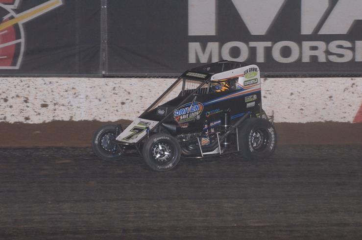 Inheriting the lead with one lap in the books, Tyler Thomas showed the way for Spencer Bayston, Ryan Robinson, Zeb Wise, and Justin Grant. Grant took to the rim of the banked Lucas Oil Speedway and worked his way to second, on the tail of Tyler Thomas. On lap 11, Grant captured the lead as Thomas faded to third, falling right into the crosshairs of Tyler Courtney and Zach Daum.