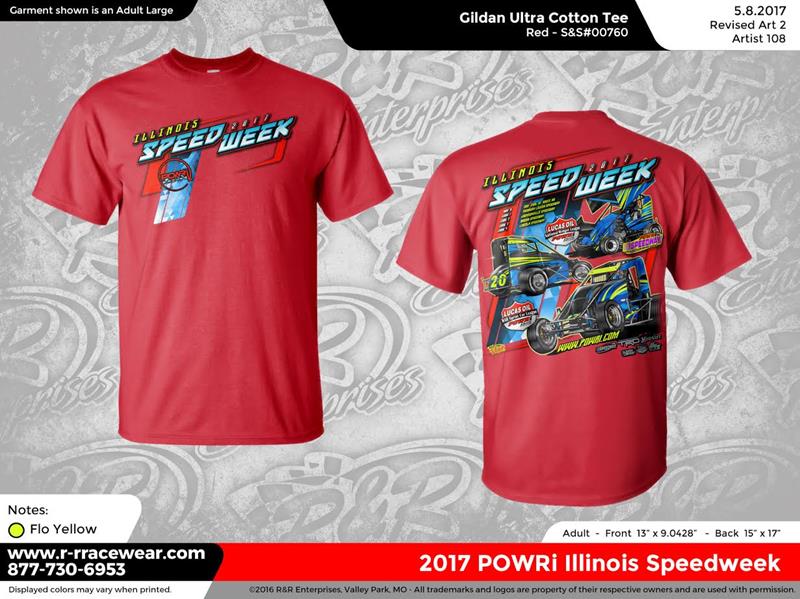 Indianapolis, IN - The Official 2017 POWRi Illinois Speed Week t-shirts are available for pre-order at http://www.powri.com/shopping/?ic=14110. They are available in black, red, and gray in limited supplies (adult sizes only). All shirts pre-ordered on the POWRi website will be shipped out on Tuesday, May 30.