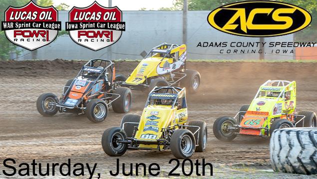 Belleville, IL. (06/16/2020) POWRi Lucas Oil WAR and Iowa Sprint Leagues will venture to uncharted territory on Saturday, June 20th with the first-ever visit to Adams County Speedway. Located on the outskirts of Corning, Iowa, the picturesque half-mile dirt-oval will see traditional sprinters from near-and-far try to tame this tricky track, with $1,500 going to the top competitor.