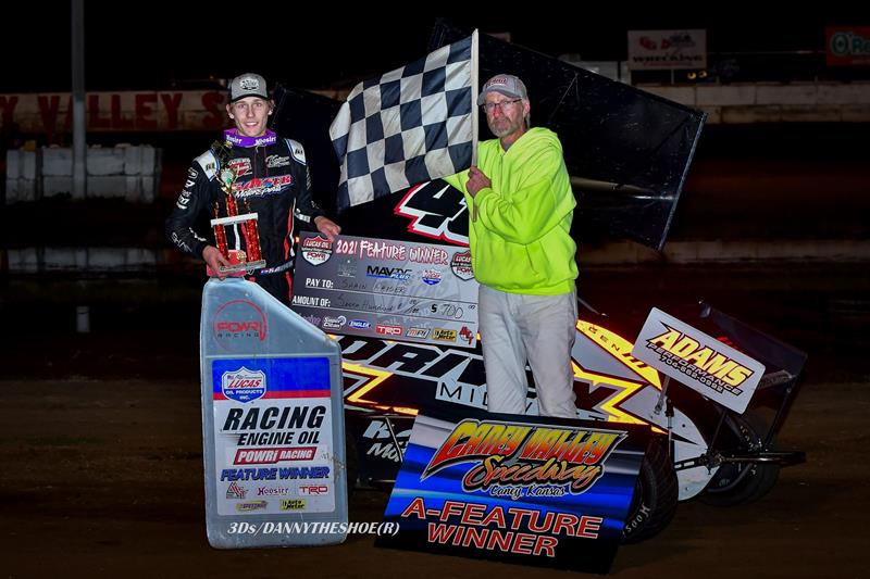 Bradley Fezard would battle his way to finish in a close runner-up position as Trevin Littleton placed third. to round out the top-five finishers for the Lucas Oil POWRi 600cc Outlaw Micro League presented by Engler Machine and Tool at Caney Valley Speedway for Night Two of the Series Season Championship weekend of racing.